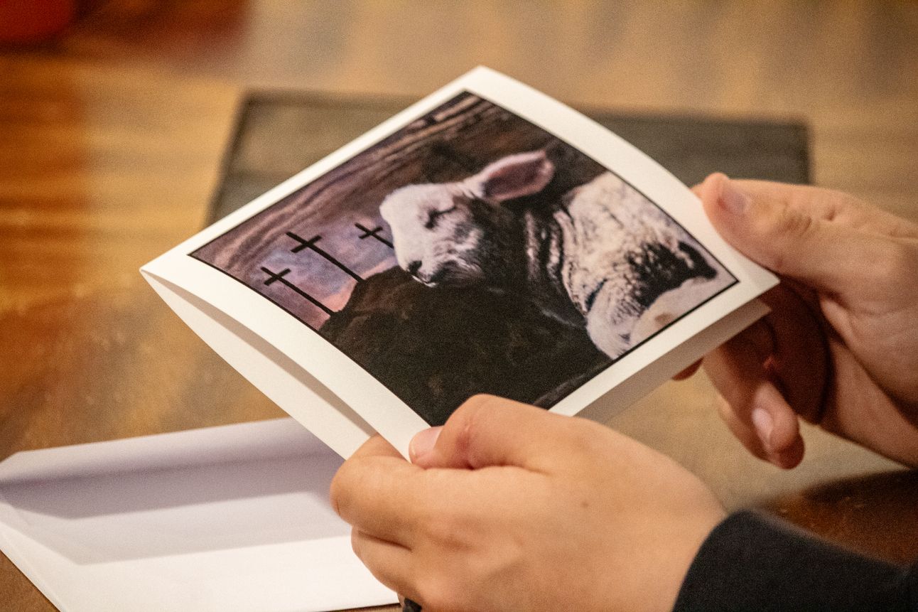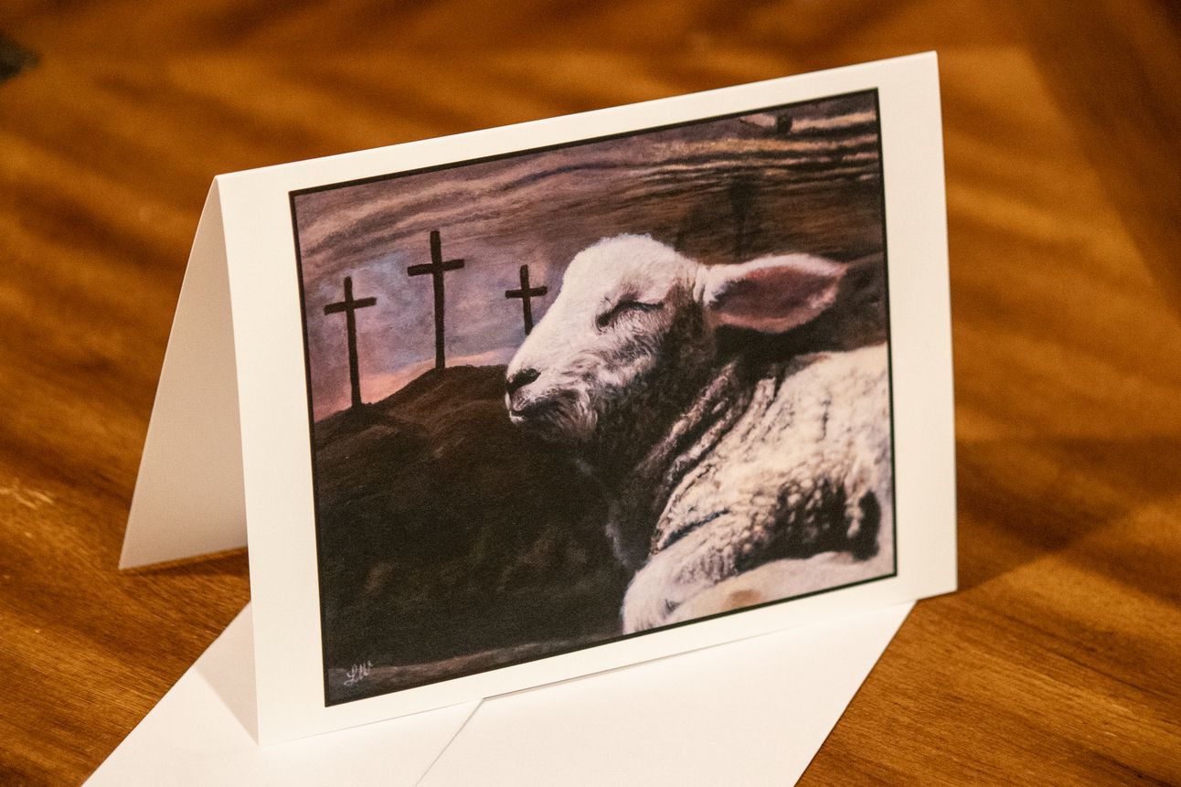 As for the new product I have available, these are Easter card prints of a special Biblical painting I created a little bit ago. Easter is such a special time celebrating the Lord’s Resurrection. I wanted to give you first-time access to these 7×5 inch cards with a print of “Eternal Lamb.”